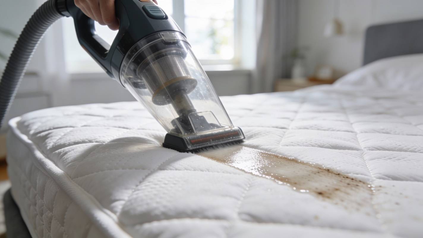 Этот вариант обычно выбирают, когда нужно освежить матрас полностью и убрать бытовую грязь по всей площади. Суть простая: раствор наносится на поверхность, затем техника «вытягивает» его обратно вместе с загрязнениями, и ткань остаётся лишь слегка влажной, а не мокрой насквозь.