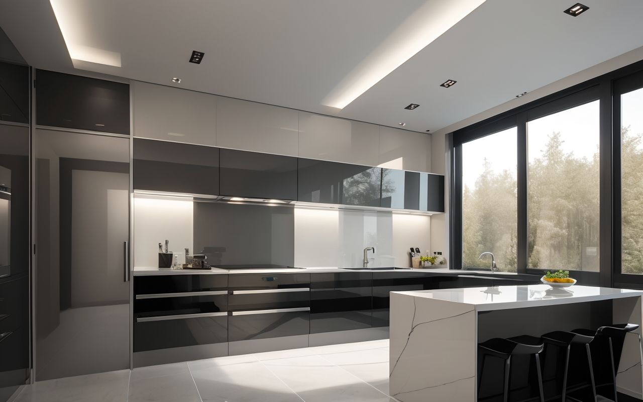 Лакированные фасады, простые формы, яркие акценты или монохромность. Такой дизайн подчеркнет чистоту линий и функциональность.