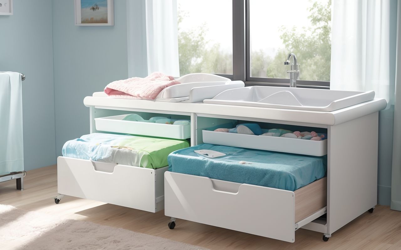 Использование водонепроницаемых материалов позволяет легко очищать поверхность от любых загрязнений, что делает уход за столиком простым и приятным. Кроме того, такие конструкции часто имеют дополнительные функции, такие как встроенные ящики для хранения детских принадлежностей, что добавляет удобства в повседневной жизни семьи.